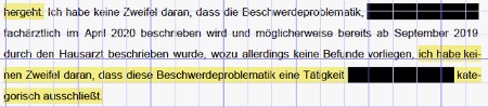 Leider kam der gerichtlich bestellte Sachverständige in seiner schriftlichen Begutachtung zu dem Ergebnis, dass aufgrund bestimmter Widersprüche keine hinreichende Sicherheit gewonnen werden konnte, um die Frage der Berufsunfähigkeit valide bewerten zu können: