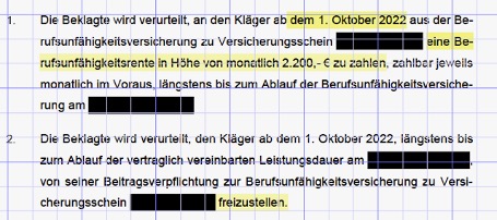 Bei diesem Ergebnis der Beweisaufnahme hatte das Gericht keine andere Wahl, als die Berufsunfähigkeitsversicherung antragsgemäß zu verurteilen.
